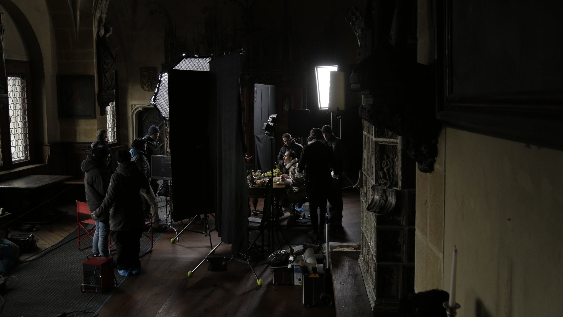 Kreuzenstein ist nicht heizbar. Aber ein geniales Filmmotiv. Die Burg wurde im 19. Jahrhundert von einem romantisch veranlagten und schwerreichen Sammler namens Graf Wilczek von einer Ruine in ein seltsames Sammelsurium der Stile, Kunstwerke und Gebäudeformen verwandelt, bis unter die Decke voll mit Waffen aus dem Dreißigjährigen Krieg, kostbaren gotischen Kruzifixen, venezianischen Drachen, Nürnberger Fachwerk, österreichischen Kirchentüren. Für die Burg wurden in ganz Europa Gebäude abgebaut und zu einer romantischen Melange neu zusammengesetzt. Genau das macht sie zu einem so dankbaren Filmmotiv. Feldlazarett, Bankierswohnung, Wirtshaus, Kloster… alles innerhalb weniger Schritte. Wenn man mit der Kälte leben kann.